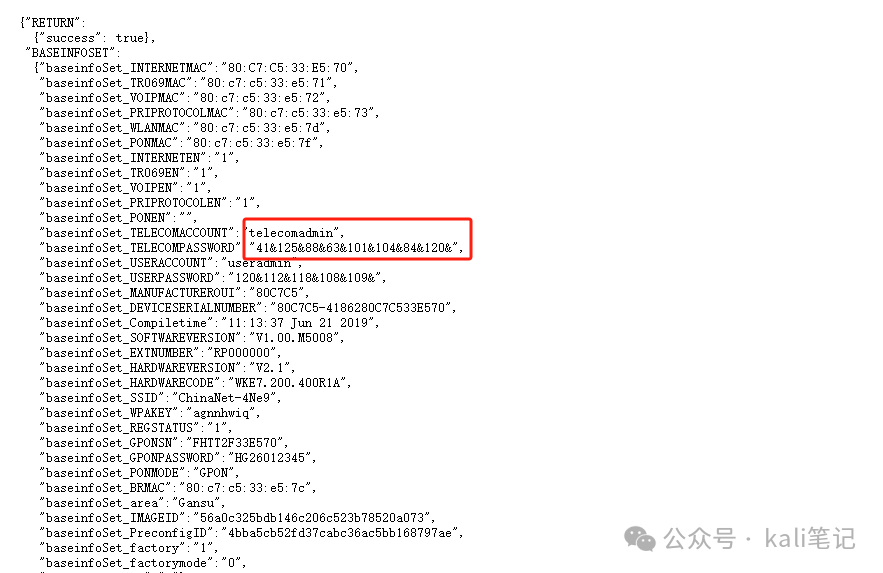 破解打開瀏覽器,訪問:http://網(wǎng)關(guān)ip:8080/cgi-bin/baseinfoSet.cgi,如,網(wǎng)關(guān)ip是192.168.1.1,則訪問http://192.168.1.1:8080/cgi-bin/baseinfoSet.cgi賬號是明文,不需要處理,密碼則是xx&xx&xx&xx...