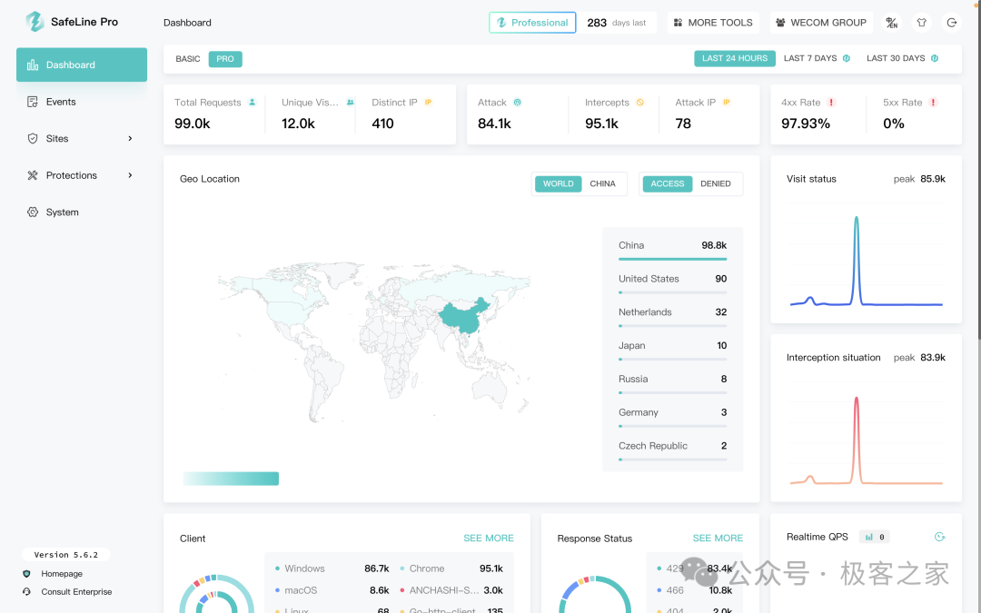 今天給大家介紹一款開源、國產(chǎn)的Web防火墻工具——雷池(SafeLine)。簡介這是一款簡單、輕量且安全的WAF?;贜ginx開發(fā)并作為反向代理連接,保護(hù)您的Web應(yīng)用程序免受常見攻擊和漏洞利用。戰(zhàn)績目前在GitHUB上有10kstar,已經(jīng)應(yīng)用于100萬個網(wǎng)站上。累計(jì)安裝量超過13萬臺保護(hù)超過1,000,000個網(wǎng)...