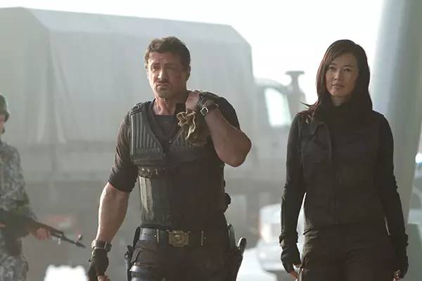 《敢死隊(duì)2》↓ 上面這張圖的原劇照有兩張。左邊的阿諾德·施瓦辛格只截取了下圖的頭部:
