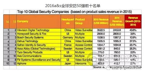下圖是在a&s《安全與自動化》公布的“全球安防50強”排名。