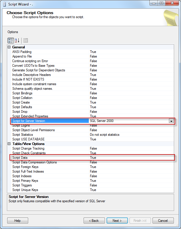 02.使用Generate Scripts生成腳本在源數(shù)據(jù)庫上右鍵,選擇Task -> Geneate Scripts... 配置相關(guān)信息,注意選擇數(shù)據(jù)庫的版本并將Script Data設(shè)置成True。 這里需要注意,因為有100萬的數(shù)據(jù),所以導(dǎo)出的SQL文件就有400多M,所以用SQL Server Management Studio是打不開的。 所以只能使用sqlcmd執(zhí)行。 ![]()