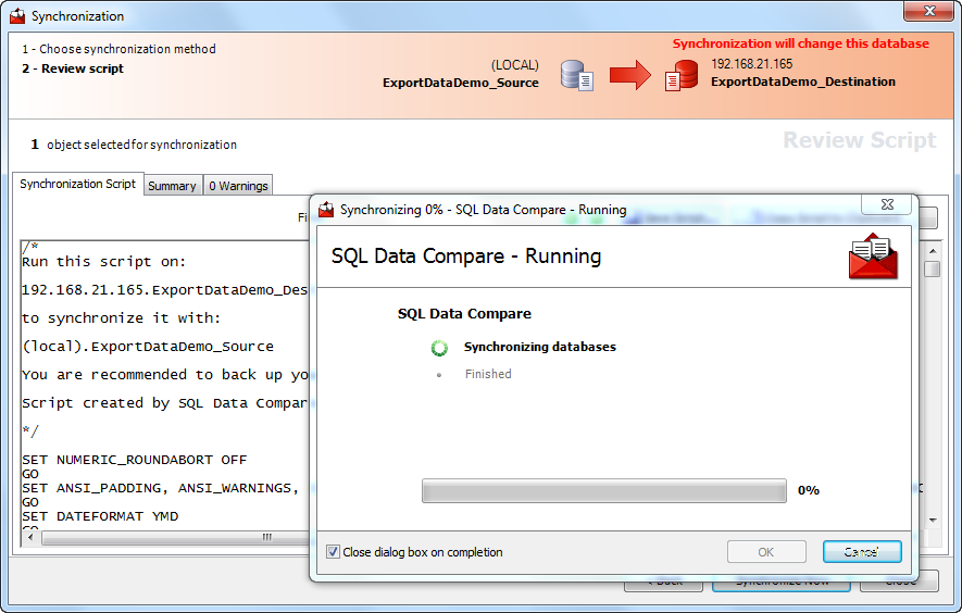 06.使用RedGate的SQL Data Compare進行數(shù)據(jù)遷移第三方的工具,有數(shù)據(jù)庫結(jié)構(gòu)比較的工具SQL Compare和數(shù)據(jù)比較工具SQL Data Compare。 執(zhí)行 因為也是生成INSERT的SQL執(zhí)行的,所以就不做過多比較了,上面已經(jīng)測試過了。 07.結(jié)果對比因為這里測試的環(huán)境有網(wǎng)絡(luò)和表結(jié)構(gòu)的特殊情況,不能說明所有情況下效能的差異,但是也可作為參考之用。 下面給出比較結(jié)果。 該文章在 2017/4/5 9:56:38 編輯過 |