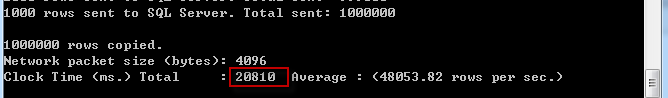 03.使用BCP進行導(dǎo)出導(dǎo)入在嘗試了前面兩個效率低下的工具之后,我們終于開始嘗試下SQL Server中專門用于導(dǎo)數(shù)據(jù)的工具:BCP。 關(guān)于BCP的詳細用法可以參見MSDN的幫助文檔。 我們先使用BCP導(dǎo)出數(shù)據(jù)。 -U和-P后面分別為數(shù)據(jù)庫的用戶名和密碼。 我們可以看到100萬的數(shù)據(jù)導(dǎo)出僅用了1.8秒。 現(xiàn)在我們再使用BCP進行導(dǎo)入。 執(zhí)行后發(fā)現(xiàn),導(dǎo)入數(shù)據(jù)使用了20.8秒,還是很快的。