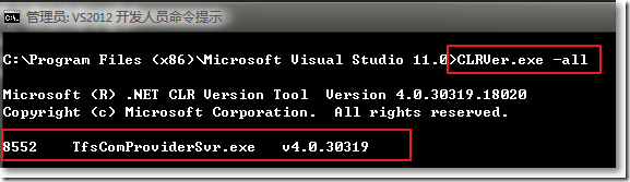 →輸入CLRVer.exe -all,查看正在運(yùn)行的進(jìn)程使用CLR的版本號(hào)