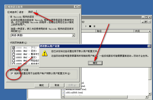 看到很生氣哈,網(wǎng)上查了很多的方法,都解決不了,來最終得出結(jié)論,本問題和ASP本身是沒有關(guān)系的。 實際上是系統(tǒng)設(shè)置的問題。下面PC6來教大家如何解決系統(tǒng)時間上午下午的問題: 解決方法: 打開控制面板/區(qū)域和語言選項。 在這里面有三個標(biāo)簽。區(qū)域選項、語言、高級。默認(rèn)區(qū)域選項是打開的。這次我們打開高級標(biāo)簽。勾選“將所有設(shè)置應(yīng)用于當(dāng)前用戶賬戶和默認(rèn)用戶配置文件。會彈出個警告框,點擊確定。然后重啟系統(tǒng)。問題就解決了