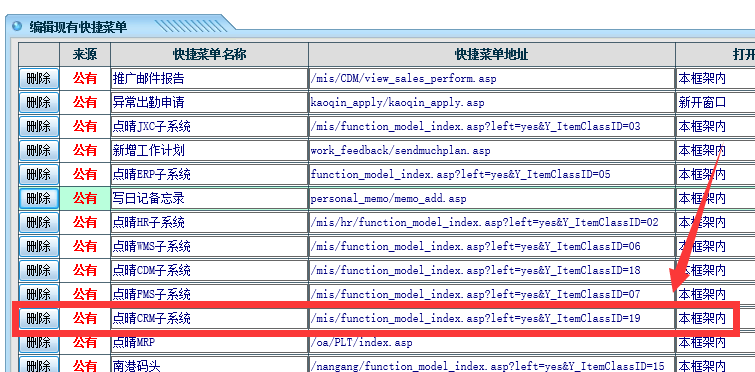 [點(diǎn)晴永久免費(fèi)OA]請問點(diǎn)晴crm系統(tǒng)頂部快捷菜單地址是什么?在哪里可以設(shè)置?