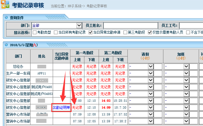 :?jiǎn)T工加班/調(diào)休/出差/忘記打卡/請(qǐng)假/公務(wù)外出等怎么在OA中補(bǔ)上考勤記錄?。?/div>![]() 如果員工加班/調(diào)休/出差/忘記打卡/請(qǐng)假/公務(wù)外出等導(dǎo)致沒(méi)有刷卡記錄,那么應(yīng)該要在點(diǎn)晴OA中填寫(xiě)異常出勤申請(qǐng)單,交給主管審核,確認(rèn)無(wú)誤后,給考勤員歸檔,系統(tǒng)就會(huì)在考勤員審核時(shí),自動(dòng)在該缺勤信息前面列出這個(gè)異常出勤申請(qǐng)了。 點(diǎn)晴OA的工作流模板中已經(jīng)預(yù)置了多個(gè)異常出勤模板,網(wǎng)管需要根據(jù)實(shí)際需求使用預(yù)置模板設(shè)計(jì)相應(yīng)的異常出勤申請(qǐng)工作流,必須是系統(tǒng)預(yù)置模板設(shè)計(jì)的工作流異常出勤申請(qǐng),才會(huì)自動(dòng)匯總到人力資源管理模塊的考勤管理中,考勤員才能直接使用這個(gè)異常出勤申請(qǐng)結(jié)果。網(wǎng)管自己設(shè)計(jì)的異常出勤模板,是沒(méi)有這個(gè)效果的。 異常出勤申請(qǐng)單模板分為以下幾種: 請(qǐng)假、出差、補(bǔ)休(/調(diào)休)、加班、公務(wù)外出、漏打卡出勤證明單 根據(jù)實(shí)際需求,設(shè)計(jì)對(duì)應(yīng)的申請(qǐng)流程即可。 相關(guān)教程: