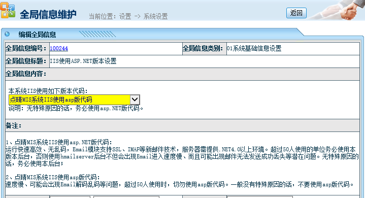 ![]() 1、點(diǎn)晴MIS系統(tǒng)IIS使用asp.NET版代碼: 運(yùn)行快速高效、無(wú)亂碼,Email模塊支持SSL、IMAP等新郵件技術(shù),服務(wù)器需提供.NET4.0以上環(huán)境。超過(guò)50人使用的單位務(wù)必使用本版本后臺(tái),否則使用hmailserver后臺(tái)不但會(huì)出現(xiàn)Email進(jìn)入速度慢、而且可能出現(xiàn)郵件無(wú)法發(fā)送成功丟失等潛在問(wèn)題。無(wú)特殊原因的話(huà),務(wù)必使用本后臺(tái); 2、點(diǎn)晴MIS系統(tǒng)IIS使用asp版代碼: 速度慢、可能會(huì)出現(xiàn)Email解碼亂碼等問(wèn)題,超過(guò)50人使用時(shí),切勿使用asp版代碼。一般沒(méi)有特殊原因的話(huà),不要使用asp版代碼。 以上選項(xiàng)的來(lái)由: 點(diǎn)晴OA是從2002年開(kāi)始開(kāi)發(fā)的辦公管理系統(tǒng),基于技術(shù)的不斷演進(jìn),點(diǎn)晴OA從早期的asp技術(shù)逐步切換到asp.net技術(shù),asp技術(shù)比較落后但安裝配置比較簡(jiǎn)單,asp.net技術(shù)先進(jìn)但運(yùn)行環(huán)境配置相對(duì)比較復(fù)雜,如果人少的話(huà),用asp版即可,如果人多的話(huà),務(wù)必切換到asp.net版本,需要按照以下教程進(jìn)行相應(yīng)的安裝配置: 點(diǎn)晴MIS信息通(手機(jī)APP及PC客戶(hù)端)后臺(tái)服務(wù)程序所需.NET環(huán)境安裝配置說(shuō)明[ 65006]http://9194.oa22.cn 該文章在 2018/9/17 22:12:03 編輯過(guò) |
