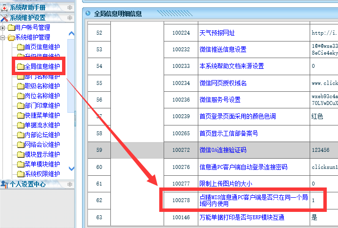 如果確定本單位所有用戶(hù)都在同一個(gè)局域網(wǎng)內(nèi),通過(guò)以下設(shè)置,點(diǎn)晴MIS信息通PC客戶(hù)端可以強(qiáng)制使用登錄OA的IP地址,而不再自動(dòng)掃描判斷對(duì)方IP地址,就可以正常使用各項(xiàng)功能了: 1、如果確定本單位所有用戶(hù)都在同一個(gè)局域網(wǎng)內(nèi),并且使用的IP地址符合上面國(guó)際互聯(lián)網(wǎng)局域網(wǎng)IP地址規(guī)范,那么可以在點(diǎn)晴OA中如下位置,設(shè)置該值為:1,就可以正確顯示對(duì)方的IP地址了: