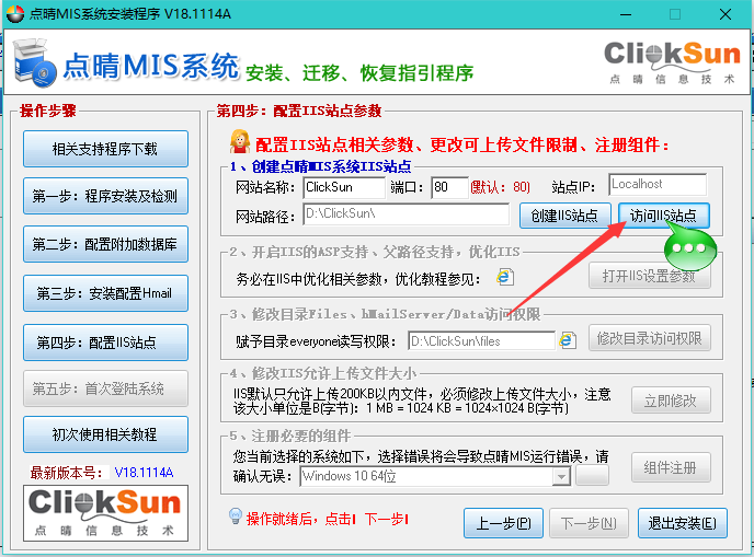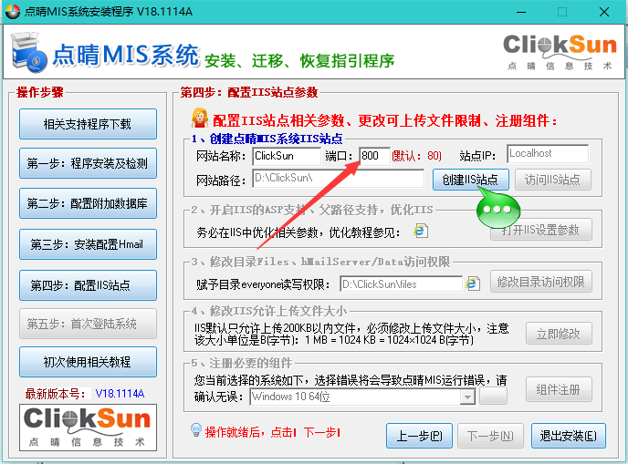 :點(diǎn)晴MIS半自動(dòng)安裝程序提示請(qǐng)確認(rèn)80端口是否被占用,如何解決?![]() 點(diǎn)晴OA安裝時(shí),默認(rèn)會(huì)使用80端口作為訪問(wèn)端口,如果這個(gè)端口已經(jīng)被其他網(wǎng)站占用,或者網(wǎng)管在重復(fù)打開(kāi)點(diǎn)晴MIS半自動(dòng)安裝程序安裝點(diǎn)晴OA,就都會(huì)看到這個(gè)提示。點(diǎn)擊頁(yè)面上按鈕“訪問(wèn)IIS站點(diǎn)”,可以打開(kāi)占用這個(gè)端口的網(wǎng)站: ![]() 如果確定80端口已經(jīng)被其他網(wǎng)站占用,那么就選擇:是,改用一個(gè)其他端口繼續(xù)安裝即可: ![]() ![]() 如果確定該端口是因?yàn)橹貜?fù)打開(kāi)點(diǎn)晴MIS半自動(dòng)安裝程序安裝點(diǎn)晴OA造成的,就勾選是點(diǎn)晴OA占用了這個(gè)端口即可,然后繼續(xù)后續(xù)步驟: ![]() 該文章在 2018/12/5 18:22:34 編輯過(guò) |