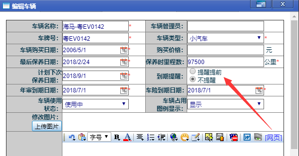 請問車輛管理中的保險到期會不會自動提醒?