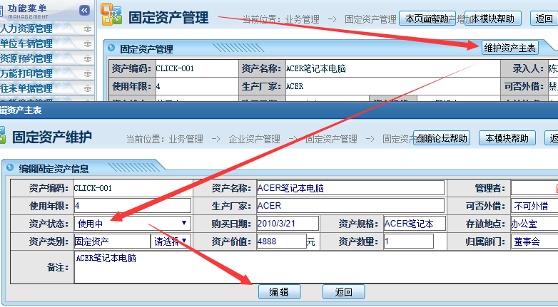 請(qǐng)問(wèn)固定資產(chǎn)如何修改使用狀態(tài)/資產(chǎn)類別/生產(chǎn)廠家/年限/名稱/購(gòu)買日期/存放地點(diǎn)/編碼/價(jià)值/數(shù)量/歸屬部門等信息?