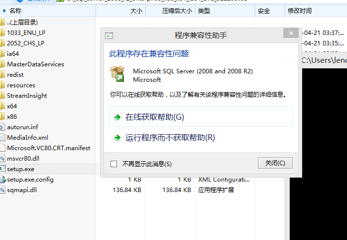 安裝數(shù)據(jù)庫MicrosoftSQLServer2008/2005都顯示此程序存在兼容性問題,如何解決?