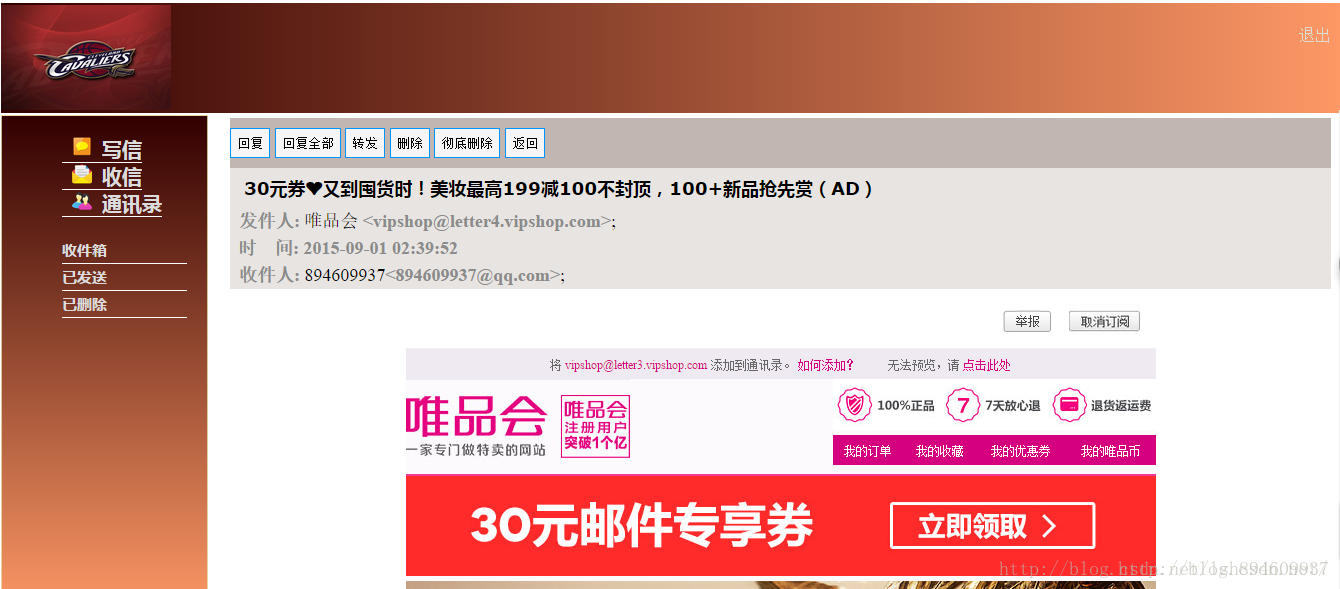 最近因?yàn)椴皇翘?,所以就心血來潮的用Lumisoft寫了個Web端的郵件收發(fā)系統(tǒng)。在此記錄開發(fā)歷程。 一、首先先介紹下這個系統(tǒng)的基本思路:把郵件從服務(wù)器下載下來然后保存到本地,查看郵件的時候再加載郵件信息。這里,都是用XML,來存儲郵件的基本信息。 二、用到的類 Mail_Item類記錄郵件的基本信息 Person類記錄的是郵件用戶名及名稱 Attachment 類記錄附件的基本信息 Mail_Summary 郵件信息概要類,用于顯示郵件列表 User 用戶信息類,記錄用戶信息 /// <summary> /// 郵件的基本信息 /// </summary> public class Mail_Item { /// <summary> /// The unique mail Identity in Mail Server /// </summary> public string Mail_Id { get; set; } /// <summary> /// Mail sender /// </summary> public Person Mail_From { get; set; } /// <summary> /// Mail Receiver /// </summary> public List<Person> Mail_To = new List<Person>(); /// <summary> /// Mail copy to /// </summary> public List<Person> Mail_CopyTo = new List<Person>(); public string Mail_Subject { get; set; } /// <summary> /// Mail content path in localhost /// </summary> public string Mail_Body { get; set; } /// <summary> /// Mail receive date /// </summary> public string Mail_Date { get; set; } /// <summary> /// Mail attachments /// </summary> public List<Attachment> Mail_Attachment = new List<Attachment>(); /// <summary> /// mail is read or unread /// </summary> public bool IsRead { get; set; } public bool IsDeleted { get; set; } } 三、接收郵件 主要步驟有:登錄服務(wù)器-->判斷當(dāng)前郵件在系統(tǒng)中是否已經(jīng)存在了->下載郵件,并且保存郵件的基本信息 接收郵件代碼: public static List<Mail_Item> ReceiveMail(User user, out int mailNum) { string baseBodyPath = @"Mails\" + user.Server + @"\" + user.Identity + @"\Mails\"; string baseAttPath = @"Mails\" + user.Server + @"\" + user.Identity + @"\Attachments\"; CreateFoder(user); mailNum = 0; string _mailServer = user.Server; string _isHelpAccount = user.Account; string _isHelpPassword = user.Password; List<Mail_Item> mails = new List<Mail_Item>(); if (string.IsNullOrEmpty(_mailServer) ││ string.IsNullOrEmpty(_isHelpAccount) ││ string.IsNullOrEmpty(_isHelpPassword)) { return mails; } string _mailId = string.Empty; string _subject = string.Empty; //主題 string _body = string.Empty; //正文 string _receiveDate = string.Empty;//接收時間 // Int64 maxUID = GetXmkUserInfo(_mailServer, _isHelpAccount, _isHelpPassword).MaxMailID; //獲取上一次接收郵件最大的ID //if (maxUID < 0) //{ // return mails; //} using (POP3_Client pop = new POP3_Client()) { try { pop.Connect(_mailServer, 110, false); pop.Login(_isHelpAccount, _isHelpPassword); POP3_ClientMessageCollection messages = pop.Messages; //1415170251.6684.Qmail,S=866235:第一部分是遞增的 //最后一份郵件都不是最新的,要提示 // _mailId = messages[messages.Count - 1].UID; for (int i = messages.Count - 1; 0 <= i; i--) { _mailId = messages[i].UID; //try //{ // byte[] bt = messages[i].HeaderToByte(); // Mail_Message mime_header = Mail_Message.ParseFromByte(bt); // Mail_h_Received[] r = mime_header.Received; //} //catch //{ } //if (Convert.ToInt64(_mailId.Split('.')[0]) <= maxUID) // return mails; try { if (CheckMailExists(user, _mailId)) //如果存在 { continue; } } catch { ; } #region 讀取郵件 POP3_ClientMessage ms = messages[i]; if (ms != null) { List<Person> p_to = new List<Person>(); //收件人列表 List<Person> p_copyTo = new List<Person>();//抄送人列表 Person p_from = new Person();//發(fā)送人 List<Attachment> list_att = new List<Attachment>();//附件信息 #region 基本信息 //有新郵件就+1 Mail_Message mime_message = new Mail_Message(); try { byte[] messageBytes = ms.MessageToByte(); mime_message = Mail_Message.ParseFromByte(messageBytes); } catch { continue; } mailNum++; try { _subject = mime_message.Subject.Trim() == string.Empty ? "No Subject" : mime_message.Subject; } catch (Exception ex) { _subject = "No Subject"; } p_from.Address = mime_message.From == null ? "sender is null" : mime_message.From[0].Address; try { string name = ""; if (string.IsNullOrEmpty(mime_message.From[0].DisplayName)) { int index = mime_message.From[0].Address.IndexOf("@"); name = mime_message.From[0].Address.Substring(0, index); } else { name = mime_message.From[0].DisplayName; } p_from.Name = name; } catch (Exception fe) { p_from.Name = "SomeOne"; } try { Mail_t_AddressList to = mime_message.To; if (to.Count > 0 && to != null) { for (int ii = 0; ii < to.Mailboxes.Length; ii++) { string t_name = ""; if (string.IsNullOrEmpty(to.Mailboxes[ii].DisplayName)) { int index = to.Mailboxes[ii].Address.IndexOf("@"); t_name = to.Mailboxes[ii].Address.Substring(0, index); } else { t_name = to.Mailboxes[ii].DisplayName; } Person per = new Person { Address = to.Mailboxes[ii].Address, Name = t_name }; p_to.Add(per); } } } catch (Exception e) { ; } try { Mail_t_AddressList copyTo = mime_message.Cc; //獲取的抄送人信息 if (copyTo.Count > 0 && copyTo != null) { for (int ii = 0; ii < copyTo.Mailboxes.Length; ii++) { string t_name = ""; if (string.IsNullOrEmpty(copyTo.Mailboxes[ii].DisplayName)) { int index = copyTo.Mailboxes[ii].Address.IndexOf("@"); t_name = copyTo.Mailboxes[ii].Address.Substring(0, index); } else { t_name = copyTo.Mailboxes[ii].DisplayName; } Person per1 = new Person { Address = copyTo.Mailboxes[ii].Address, Name = t_name }; p_copyTo.Add(per1); } } } catch (Exception e) { ; } try { _receiveDate = mime_message.Date.ToString("yyyy-MM-dd HH:mm:ss"); } catch { Mail_h_Received[] r = mime_message.Received; _receiveDate = r[0].Time.ToString("yyyy-MM-dd HH:mm:ss") ; } _body = mime_message.BodyText; try { if (!string.IsNullOrEmpty(mime_message.BodyHtmlText)) { _body = mime_message.BodyHtmlText; } } catch { _body = mime_message.BodyText; ;//Response.Write("<script>alert('HTMLBODY');</script>");//屏