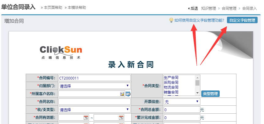 如何給單位合同管理模塊增加自定義字段設(shè)置?
