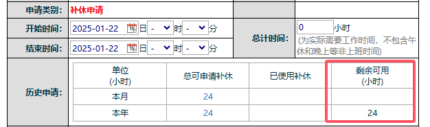 三:工作流補(bǔ)休申請(qǐng)界面顯示剩余假期: