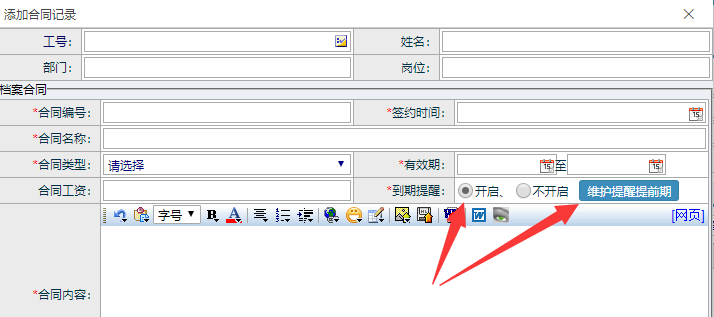 人力資源管理的合同模塊如何增加到期提前提醒啊?
