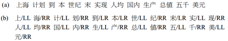 除了上述歧義,有些歧義無法在句子內(nèi)部解決,需要結(jié)合篇章上下文。例如,"乒乓球拍賣完了",可以切分為"乒乓/球拍/賣/完/了",也可以切分成"乒乓球/拍賣/完/了"。這類分詞歧義使得分詞問題更加復(fù)雜。 詞的顆粒度選擇問題是分詞的一個難題。研究者們往往把"結(jié)合緊密、使用穩(wěn)定"視為分詞單位的界定準(zhǔn)則,然而人們對于這種準(zhǔn)則理解的主觀性差別較大,受到個人的知識結(jié)構(gòu)和所處環(huán)境的很大影響[3]。選擇什么樣的詞的顆粒度與要實現(xiàn)具體系統(tǒng)緊密相關(guān)。例如在機(jī)器翻譯中,通常顆粒度大翻譯效果好。比如"聯(lián)想公司"作為一個整體時,很容易找到它對應(yīng)的英文翻譯Lenovo,如果分詞時將其分開,可能翻譯失敗。然而,在網(wǎng)頁搜索中,小的顆粒度比大的顆粒度好。比如"清華大學(xué)"如果作為一個詞,當(dāng)用戶搜索"清華"時,很可能就找不到清華大學(xué)。[10] 2. 中文分詞文獻(xiàn)調(diào)研 2.1 最大匹配法梁南元在1983年發(fā)表的論文《書面漢語的自動分詞與另一個自動分詞系統(tǒng)CDWS》提到,蘇聯(lián)學(xué)者1960年左右研究漢俄機(jī)器翻譯時提出的 6-5-4-3-2-1 分詞方法。其基本思想是先建立一個最長詞條字?jǐn)?shù)為6的詞典, 然后取句子前6個字查詞典,如查不到, 則去掉最后一個字繼續(xù)查, 一直到找著一個詞為止。梁南元稱該方法為最大匹配法——MM方法(The Maximum Matching Method)。由MM方法自然引申,有逆向的最大匹配法。它的分詞思想同MM方法,不過是從句子(或文章)末尾開始處理的,每次匹配不成詞時去掉最前面的字。雙向最大匹配法即為MM分詞方法與逆向MM分詞方法的結(jié)合。梁南元等人首次將MM方法應(yīng)用于中文分詞任務(wù),實現(xiàn)了我國第一個自動漢語自動分詞系統(tǒng)CDWS。[2] 2.2 復(fù)雜最大匹配法復(fù)雜最大匹配算法, 由Chen 和Liu在《Word identification for Mandarin Chinese sentences》提出[4]。該文提出了三詞語塊(three word chunks)的概念。三詞語塊生成規(guī)則是: 在對句子中的某個詞進(jìn)行切分時,如果有歧義拿不定主意,就再向后展望兩個漢語詞,并且找出所有可能的三詞語塊。在所有可能的三詞語塊中根據(jù)如下四條規(guī)則選出最終分詞結(jié)果。 規(guī)則1: 最大匹配 (Maximum matching) 其核心的假設(shè)是:最可能的分詞方案是使得三詞語塊(three-word chunk)最長。 規(guī)則2: 最大平均詞長(Largest average word length) 在句子的末尾,很可能得到的"三詞語塊"只有一個或兩個詞(其他位置補(bǔ)空),這時規(guī)則1就無法解決其歧義消解問題,因此引入規(guī)則2:最大平均詞長,也就是從這些語塊中找出平均詞長最大的語塊,并選取其第一詞語作為正確的詞語切分形式。這個規(guī)則的前提假設(shè)是:在句子中遇到多字詞語的情況比單字詞語更有可能。 規(guī)則3:最小詞長方差(Smallest variance of word lengths) 還有一些歧義是規(guī)則1和規(guī)則2無法解決的。因此引入規(guī)則3:最小詞長方差,也就是找出詞長方差最小的語塊,并選取其第一個詞語作為正確的詞語切分形式。在概率論和統(tǒng)計學(xué)中,一個隨機(jī)變量的方差描述的是它的離散程度。因此該規(guī)則的前提假設(shè)是:句子中的詞語長度經(jīng)常是均勻分布的。 規(guī)則4:最大單字詞語語素自由度之和(Largest sum of degree of morphemic freedom of one-character words) 有可能兩個"三詞語塊"擁有同樣的長度、平均詞長及方差,因此上述三個規(guī)則都無法解決其歧義消解問題。規(guī)則4主要關(guān)注其中的單字詞語。直觀來看,有些漢字很少作為詞語出現(xiàn),而另一些漢字則常常作為詞語出現(xiàn),從統(tǒng)計角度來看,在語料庫中出現(xiàn)頻率高的漢字就很可能是一個單字詞語,反之可能性就小。計算單詞詞語語素自由度之和的公式是對"三詞語塊"中的單字詞語頻率取對數(shù)并求和。規(guī)則4則選取其中和最大的三詞語塊作為最佳的詞語切分形式。 最大匹配算法以及其改進(jìn)方案是基于詞典和規(guī)則的。其優(yōu)點是實現(xiàn)簡單,算法運(yùn)行速度快,缺點是嚴(yán)重依賴詞典,無法很好的處理分詞歧義和未登錄詞。因此,如何設(shè)計專門的未登錄詞識別模塊是該方法需要考慮的問題。 2.3 基于字標(biāo)注的分詞法2002年,Xue等人在《Combining Classifiers for Chinese Word Segmentation》一文中首次提出對每個字進(jìn)行標(biāo)注,通過監(jiān)督機(jī)器學(xué)習(xí)算法訓(xùn)練出分類器從而進(jìn)行分詞[5]。一年后,Xue在最大熵(ME, Maximum Entropy)模型上實現(xiàn)的基于字標(biāo)注的分詞系統(tǒng)參加了Bakeoff-2003的評測獲得很好的成績引起關(guān)注。而后,Xue在《Chinese word segmentation as character tagging》一文中較為詳細(xì)的闡述了基于字標(biāo)注的分詞法[6]。 基于字標(biāo)注的分詞法基本思想是根據(jù)字所在詞的位置,對每個字打上LL、RR、MM和LR四種標(biāo)簽中的一個。四種標(biāo)簽的具體含義如下: