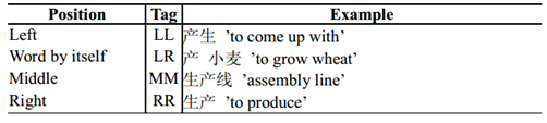 類似于詞性標(biāo)注中的POS(part-of-speech) tags,我們稱上述字標(biāo)簽為POC(position-of-character) tags。這樣,我們將分詞問題轉(zhuǎn)變成對漢字進(jìn)行序列標(biāo)注的問題。例如: