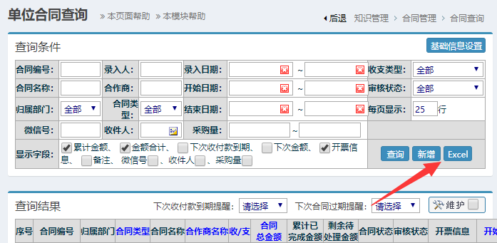 :請問單位合同怎么導出來到Excel文件呢?![]() ![]() 點擊頁面上的Excel按鈕,就可以導出合同到Excel了。如果需要導出更多信息,勾選需要顯示的字段即可。 注意: 1、本模塊只記錄了合同的簡要信息,并沒有記錄真正的合同詳細內(nèi)容,所以是無法將合同的詳細內(nèi)容導出來的; 2、單位合同管理模塊是支持使用單位管理員自定義增加字段的,如果現(xiàn)在使用的字段不夠用,可以自行增加字段,增加的字段內(nèi)容支持導出到Excel文件。 相關教程: