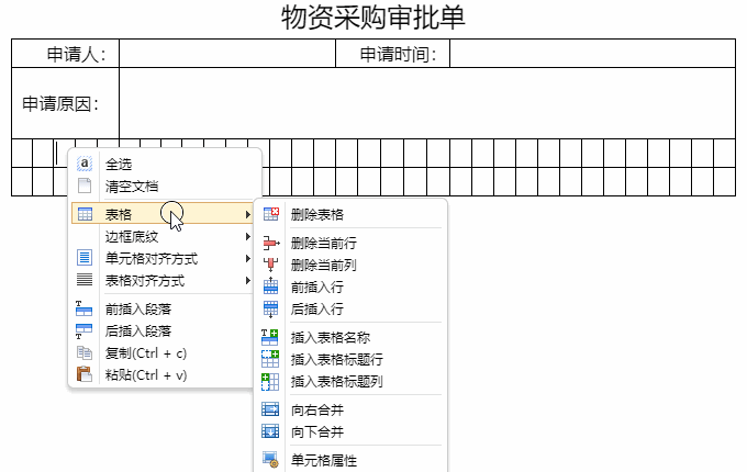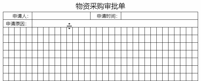 工作流設(shè)計(jì)中,最麻煩的就是表單模板設(shè)計(jì),一般需要熟悉HTML和CSS語法才能獲得完美的表單效果。為了簡(jiǎn)化復(fù)雜表單模板設(shè)計(jì),點(diǎn)晴OA工作流模板設(shè)計(jì)中引入了表格控件模板,可以比較方便設(shè)計(jì)出復(fù)雜的表格樣式,而不需要了解太多的HTML和CSS知識(shí)。 下面以這個(gè)《物資申購(gòu)審批表》為例說明如何設(shè)計(jì):