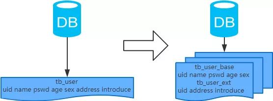 概念:以字段為依據(jù),按照字段的活躍性,將表中字段拆到不同的表(主表和擴(kuò)展表)中。