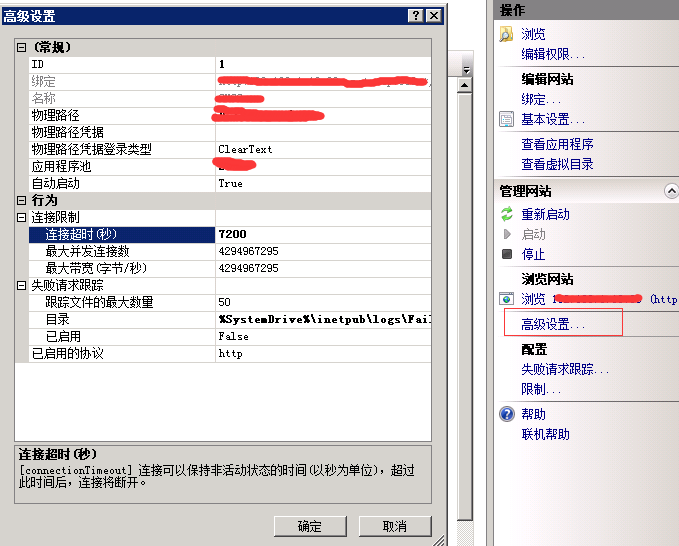 所以,如上面的截圖所示,我建議把這兩項都設置為 0,禁用這兩種回收行為。 二、網(wǎng)站屬性 高級設置