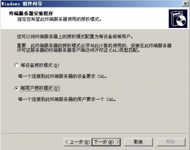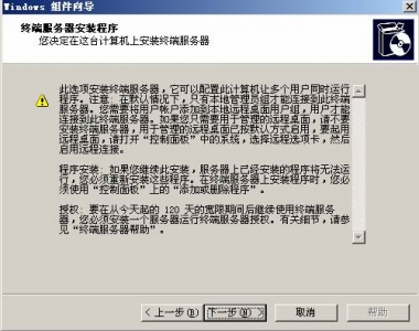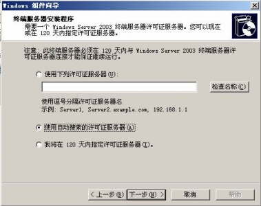 一、安裝終端服務(wù) 二、上網(wǎng)注冊(cè)得到許可證密鑰 三、激活終端服務(wù) 四、測(cè)試 在安裝了Windows Server 2003后,我們就可以安裝終端服務(wù),現(xiàn)在就讓我來介紹一下如何安裝與激活終端服務(wù)吧。 一、安裝終端服務(wù) 在“控制面板”中,打開“添加或刪除程序”,選擇“添加/刪除Windows組件(A)”,出現(xiàn)以下的安裝界面: ![]() 現(xiàn)在我們選擇安裝“終端服務(wù)器”與“終端服務(wù)器授權(quán)”,按照所出現(xiàn)的提示一步步地安裝。 ![]() 以下界面中提到兩種安全模式,當(dāng)然我們最好是選擇第一種:完整安全模式。選擇自動(dòng)搜索終端許可證服務(wù)器: