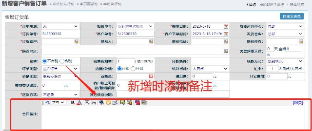應(yīng)當(dāng)在新增銷售訂單時(shí)把合同備注填上,而不是在審核時(shí)加上。