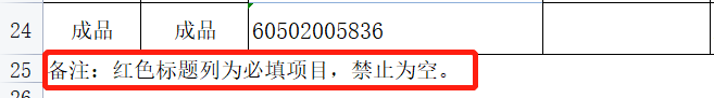 解決方法:在excel文件的最后一段加這段文字:“備注:紅色標(biāo)題列為必填項(xiàng)目,禁止為空?!?/span>
