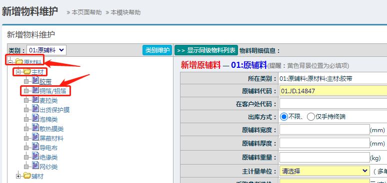 ![]() 新增物料時(shí)提醒: ![]() 答:遇到此現(xiàn)象新增時(shí),需要選擇最子級(jí)類(lèi)型,如下圖所示: 注意:點(diǎn)擊加號(hào)位置展開(kāi) 物料編輯時(shí),提醒: 答:此時(shí)編輯需要將類(lèi)別選擇到最子級(jí)再進(jìn)行編輯,如下圖: ![]() 點(diǎn)晴模切ERP更多信息:http://moqie.clicksun.cn,聯(lián)系電話(huà):4001861886 該文章在 2023/6/20 11:45:09 編輯過(guò) |