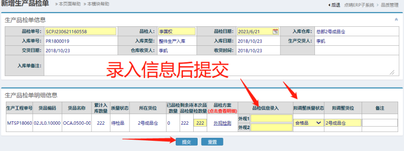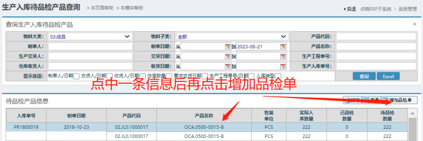 點晴模切ERP-新增生產(chǎn)成品品檢入庫單