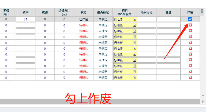![]() 3.勾上作廢的明細(xì)內(nèi)容 如下圖: ![]() 4. 最后點(diǎn)擊編輯保存即可 如下圖: