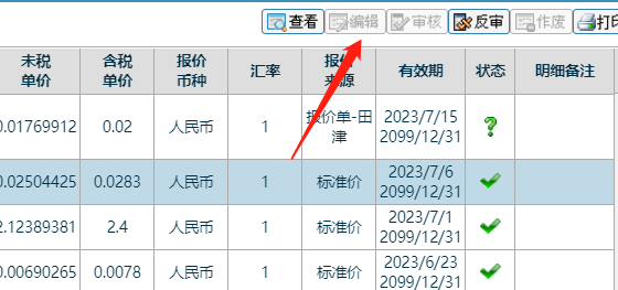 ![]() ![]() 情況描述:當對成品報價的價格有變化時,報價單管理里的已新增的報價信息也要修改。 但已經(jīng)確認后的報價信息無法編輯修改。 如下圖: ![]() 解決方法:報價單管理的管理機制是不允許修改已確認的單價,但可以通過再新增報價單來把之前的報價給覆蓋過去,那下銷售訂單時可以帶出最新的單價。