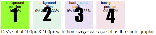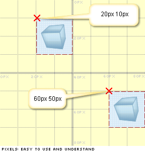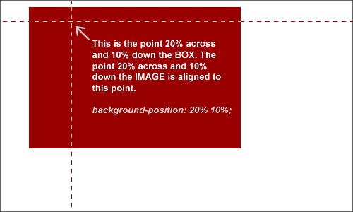 上面這三句語(yǔ)句,都將圖片定位在背景的左上角,表面上看效果是一樣的,實(shí)際上第三種定位機(jī)制與前兩種完全不同。 前兩種定位,都是將背景圖片左上角的原點(diǎn),放置在規(guī)定的位置。請(qǐng)看下面這張圖,規(guī)定的位置是"20px 10px"和"60px 50px",都是圖片的原點(diǎn)在那個(gè)位置上,圖中用X表示。 ![]() 但是第三種定位,也就是百分比定位,不是這樣。它的放置規(guī)則是,圖片本身(x%,y%)的那個(gè)點(diǎn),與背景區(qū)域的(x%,y%)的那個(gè)點(diǎn)重合。比如,如果放置位置是"20% 10%",實(shí)際結(jié)果如下圖,可以看到這個(gè)點(diǎn)是在圖片本身的"20% 10%"的位置上。 ![]() 下面是一個(gè)有趣的例子。 背景圖片是四個(gè)邊長(zhǎng)為100px的方塊疊在一起: ![]() 請(qǐng)問(wèn)怎樣才能將其橫過(guò)來(lái): ![]() 答案是,在網(wǎng)頁(yè)中先設(shè)置四個(gè)div區(qū)域: