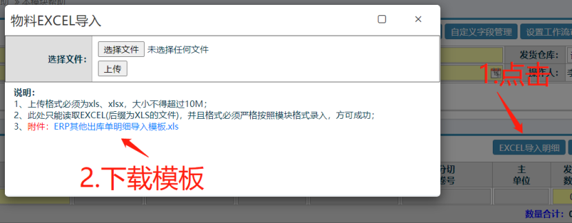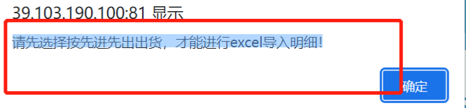 ![]() ![]() 點(diǎn)擊進(jìn)入 如下圖: ![]() 下載模板 操作如下圖: ![]() 按照模板初始填寫的內(nèi)容,參考填寫即可。 若彈出提示:請(qǐng)先選擇按先進(jìn)先出出貨,才能進(jìn)行excel導(dǎo)入明細(xì)! 如下圖: ![]() 需要先開啟先進(jìn)先出原則,教程鏈接:http://20705.oa22.cn