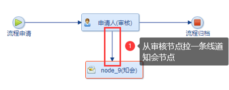 鼠標(biāo)指向?qū)徍斯?jié)點(diǎn),按住鼠標(biāo)左鍵拉出箭頭,箭頭指向知會(huì)節(jié)點(diǎn):