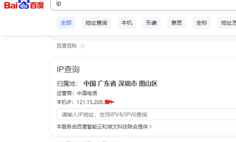 三、查看外網(wǎng)地址(出口ip地址) 百度搜索ip