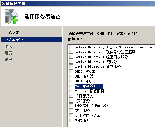 2.在"選擇服務(wù)器角色"界面中鉤選"Web 服務(wù)器",點(diǎn)下一步:
