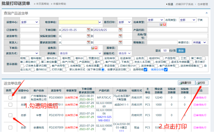 點(diǎn)晴模切ERP-勾選明細(xì)打印送貨單