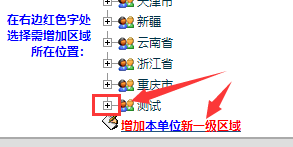 先等下方區(qū)域列表加載完畢,如果要新增第一級(jí)就點(diǎn)“增加本單位新一級(jí)區(qū)域”,如果要新增第二級(jí),點(diǎn)擊加號(hào),再點(diǎn)“增加新第二級(jí)區(qū)域