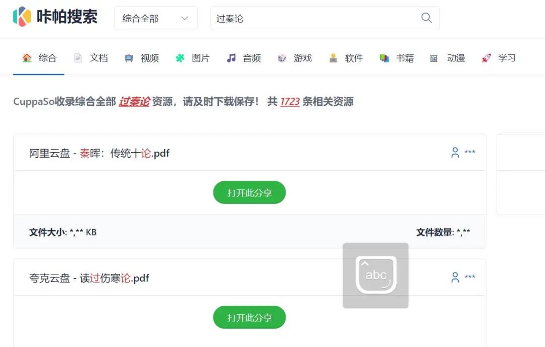 我們一般使用搜索引擎搜索內(nèi)容,但是如果需要一些項(xiàng)目專業(yè)或是精準(zhǔn)的資源,或是下載資源。那么就需要從各大網(wǎng)盤中獲取,單純的搜索引擎就不太少用了,你需要專門的網(wǎng)盤搜索工具。今天就給大家收集了幾個(gè)這樣的網(wǎng)盤資源搜索工具。 01 盤他一下 網(wǎng)站地址: 一個(gè)支持百度網(wǎng)盤和阿里云的在線網(wǎng)盤資源搜索引擎,搜索質(zhì)量很不錯(cuò)。 ![]() 找到搜索的內(nèi)容后,需要微信掃碼登錄小程序,直接微信注冊(cè)登錄就好,然后就可以跳轉(zhuǎn)到資源頁(yè)面,獲取對(duì)應(yīng)內(nèi)容。 ![]() 需要注意的是,網(wǎng)盤雖然是完全免費(fèi)的,但是搜索獲取資源,會(huì)有積分限制,當(dāng)然,一開(kāi)始可能感覺(jué)不到,但需求如果很多,那么除了簽到外,還需要做任務(wù)獲取積分。 ![]() 02 酷搜 網(wǎng)站地址: 一個(gè)專精的搜索引擎,搜索內(nèi)容主要為考研、考級(jí)、考證、IT教程等學(xué)習(xí)資料。 ![]() 網(wǎng)站資源主要來(lái)自百度網(wǎng)盤,提供設(shè)計(jì)素材及源碼和java、python、人工智能、大數(shù)據(jù)、web前端、考研等視頻教程。 ![]() 注:需要登錄后才能獲取資源。下載資源也需要積分,用戶可以發(fā)布資源獲取積分;系統(tǒng)每天0點(diǎn)會(huì)自動(dòng)贈(zèng)送2000積分;用戶也可以直接購(gòu)買VIP下載資源。 ![]() 03 咔帕搜索 網(wǎng)盤地址: 資源豐富的綜合云盤資源搜索引擎,阿里云盤搜索站,資源大都來(lái)自阿里云盤和夸克網(wǎng)盤。 ![]() 咔帕搜索專注于收錄全網(wǎng)綜合盤資源,類型包含影視、音樂(lè)、圖片、電子書、軟件、小說(shuō)等。輸入關(guān)鍵詞后就可以搜索綜合云盤資源,獲取云盤分享鏈接,你可以將資源保存到自己的云盤、或者直接下載。 ![]() 注:下載保存可能需要公眾號(hào)驗(yàn)證,微信掃碼關(guān)注公眾號(hào),回復(fù)“芝麻開(kāi)門” 獲取驗(yàn)證碼。 04 豬豬盤 網(wǎng)站地址: 一個(gè)專業(yè)的網(wǎng)盤搜索引擎,收錄了大量云盤數(shù)據(jù)資源。資源大部分來(lái)自百度網(wǎng)盤,且無(wú)法登錄即可獲取網(wǎng)盤內(nèi)容。 ![]() 不過(guò)該網(wǎng)盤有提示普通用戶只能免費(fèi)試用線路一搜索功能。網(wǎng)站提供的每條線路的數(shù)據(jù)不同,搜索結(jié)果也不同。 ![]() 05 超能搜 網(wǎng)站地址: 萬(wàn)能搜: 懶盤搜索: 百度網(wǎng)盤搜索神器。網(wǎng)站收錄了數(shù)十款百度網(wǎng)盤搜索引擎、百度云網(wǎng)盤搜索工具、百度云網(wǎng)盤解析工具,簡(jiǎn)單好用。提供影視、書籍、軟件等資源推薦以及整合信息。 ![]() 其他網(wǎng)盤搜索引擎: 盤有社區(qū):https://panyoubbs.xyz/ 網(wǎng)盤資源搜索:https://www.pansearch.me/ 大圣盤:https://www.dashengpan.com 56網(wǎng)盤:https://www.56wangpan.com 小可搜搜:https://www.xiaokesoso.com 小昭來(lái)啦:https://www.xiaozhaolaila.com SOSO云盤:https://www.sosoyunpan.com SO百度:https://www.sobaidupan.com 去轉(zhuǎn)盤:https://www.quzhuanpan.com 小不點(diǎn)搜索:https://www.xiaoso.net 小說(shuō)搜搜:https://www.xssousou.com fast搜:https://www.fastsoso.cn 該文章在 2023/9/20 10:03:01 編輯過(guò) |