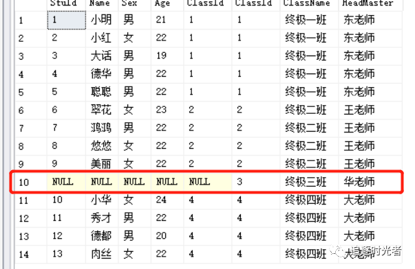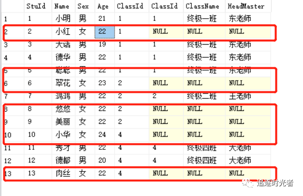 對于Full Join 而言無論,只有同時滿足的時候才會返回全部關(guān)聯(lián)的數(shù)據(jù),假如有一方不滿足返回以左邊的表數(shù)據(jù)為基準(zhǔn)返回: