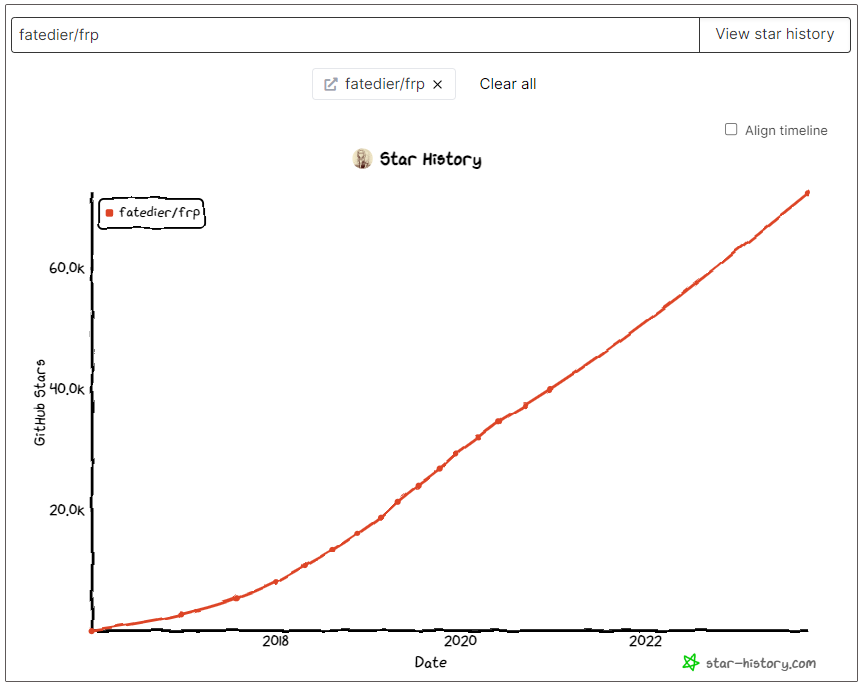 frp目前已在Github上獲取 72.4k stars,屬于github上的明星項(xiàng)目,目前已被很多公司廣泛用于測(cè)試、生產(chǎn)環(huán)境。非常受歡迎!