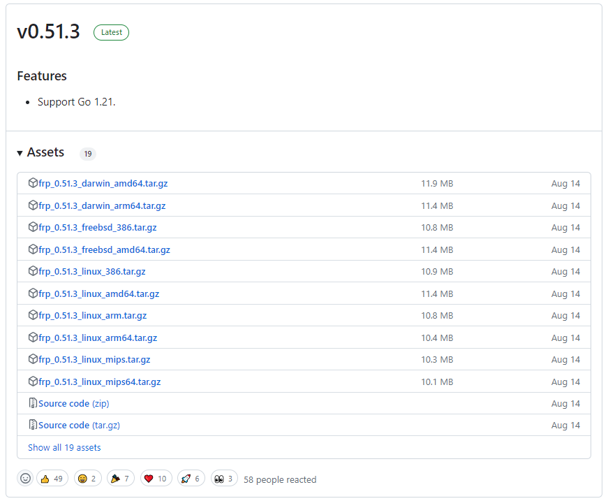 目前可以在 Github 的 Release 頁面中下載到最新版本的客戶端和服務(wù)端二進(jìn)制文件,所有文件被打包在一個(gè)壓縮包中。