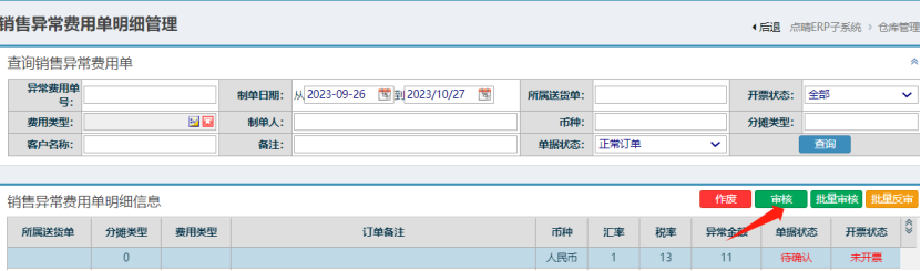 :點晴ERP-如何審核或作廢新增的銷售異常費用單