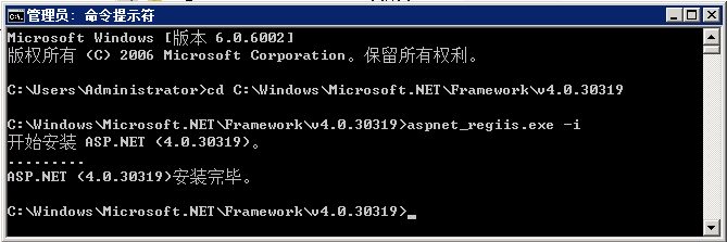 執(zhí)行命令"aspnet_regiis.exe -i",注冊"aspnet_regiis"
