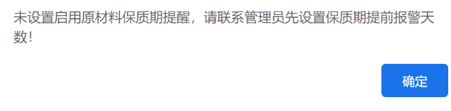 [原創(chuàng)]點(diǎn)晴模切ERP-彈出提示:未設(shè)置啟用原材料保質(zhì)期提醒,請(qǐng)聯(lián)系管理員先設(shè)置保質(zhì)期提前報(bào)警天數(shù)