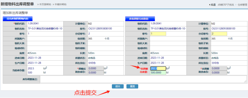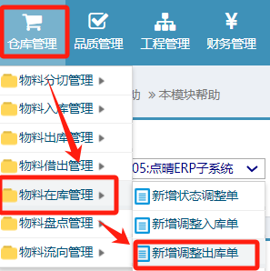 點晴模切ERP-庫存調(diào)整-調(diào)整出庫操作