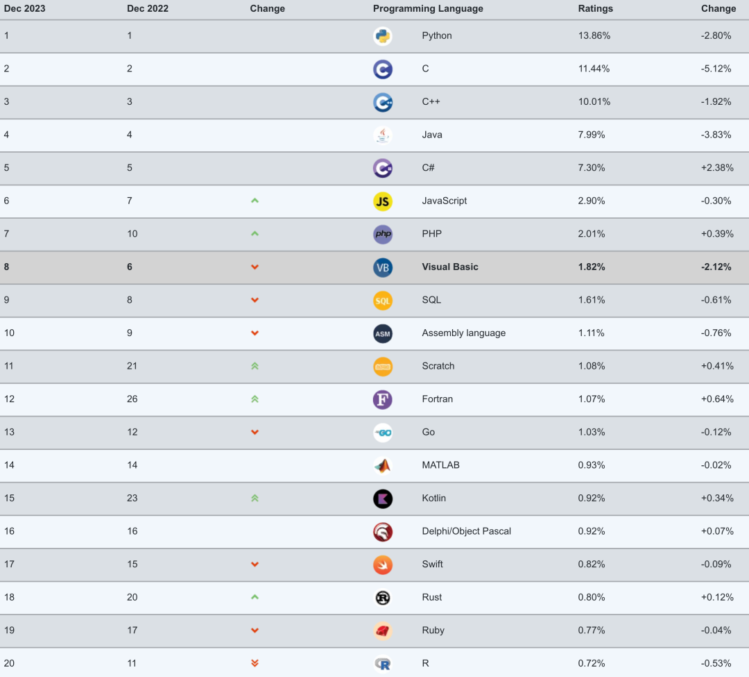 2023 年正式進入倒計時階段,TIOBE 年度編程語言即將出爐,究竟會花落誰家?接下來,我們將從最新發(fā)布的 TIOBE 12 月榜單中看看有哪些候選者吧!